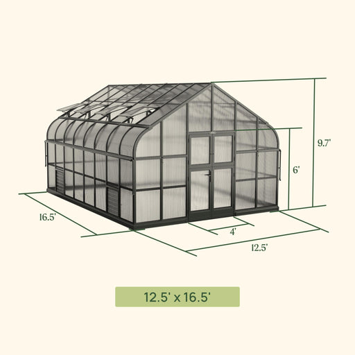 Vego Garden Grand Pacific Greenhouse - 12.5ft Wide VGHP1212PCBK